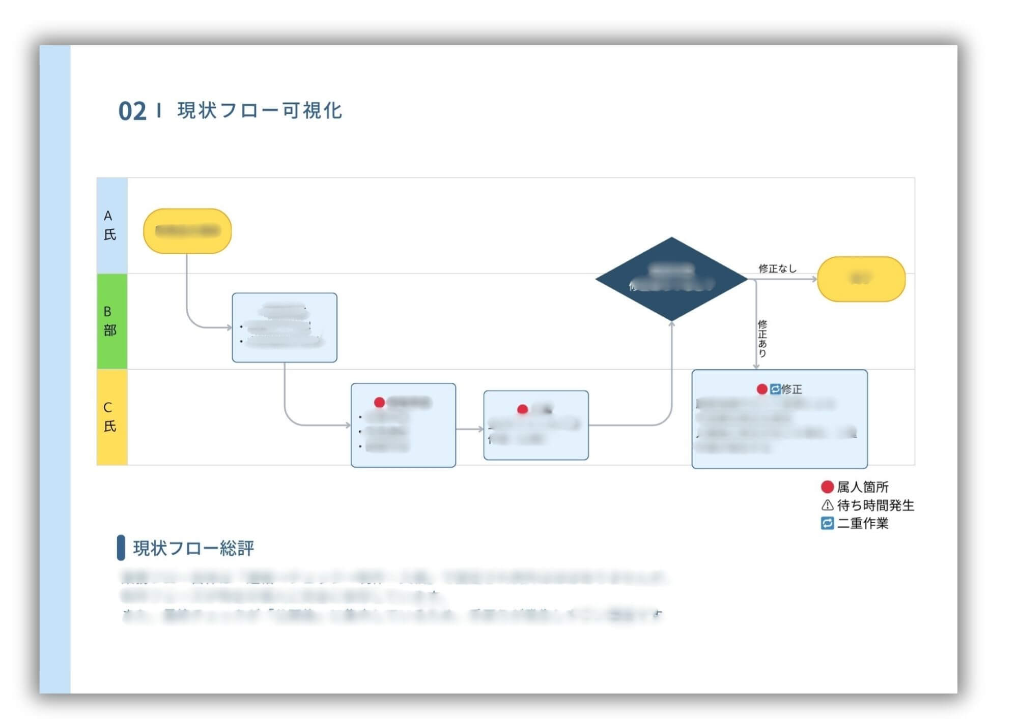 - 無駄や滞りを洗い出す